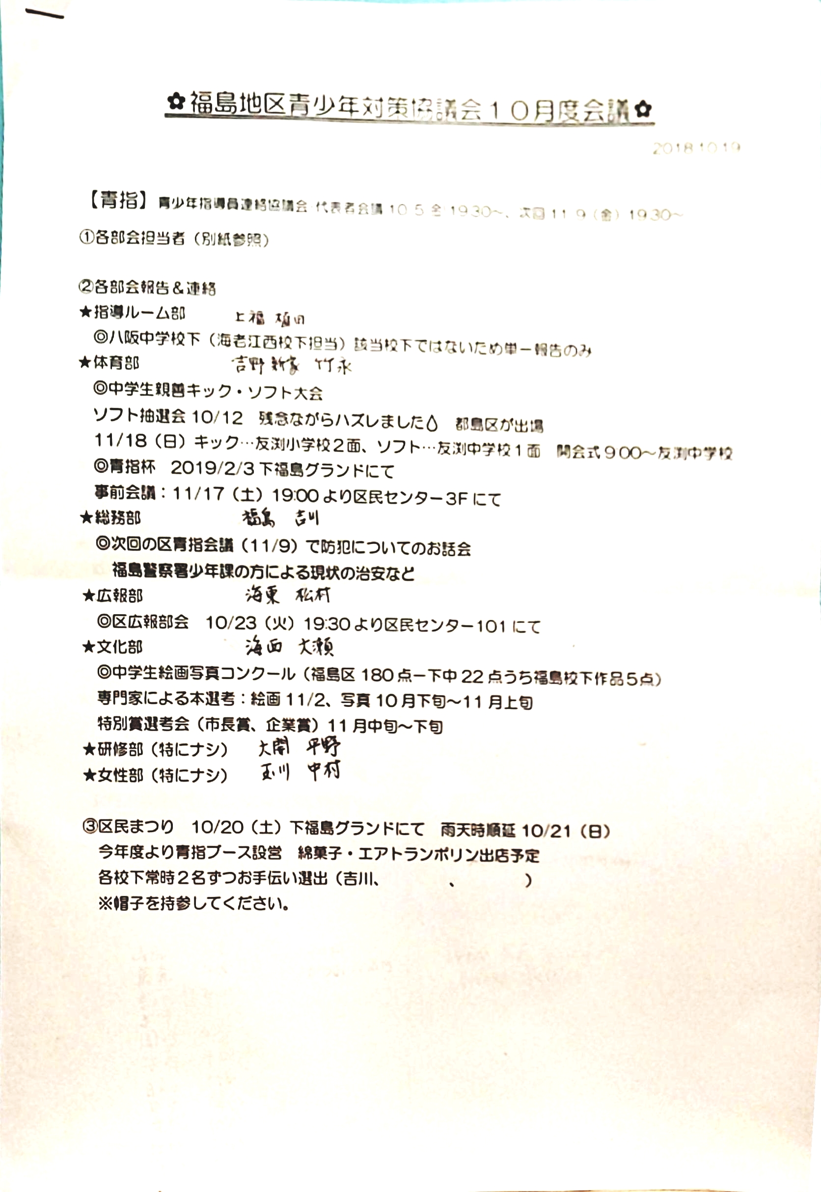 戻る 福島地区各種団体:福島地区青少年対策協議会:2018年度青対協